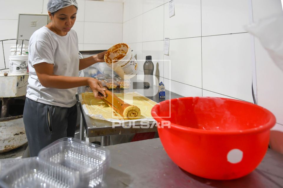 Palavras-chave: alimento bacia cozinha culinária doce de leite gastronomia higiene mulher produção touca trabalho trabalhador região sudeste confeitaria padaria confeiteiro economia rocambole panificação assado recheio cozinha industrial trabalhadora