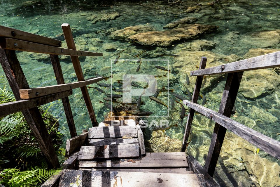 Palavras-chave: animal cardume ecoturismo escada fauna madeira peixes transparência transparente piraputanga lazer degraus natureza Rio do Peixe cristalino animais