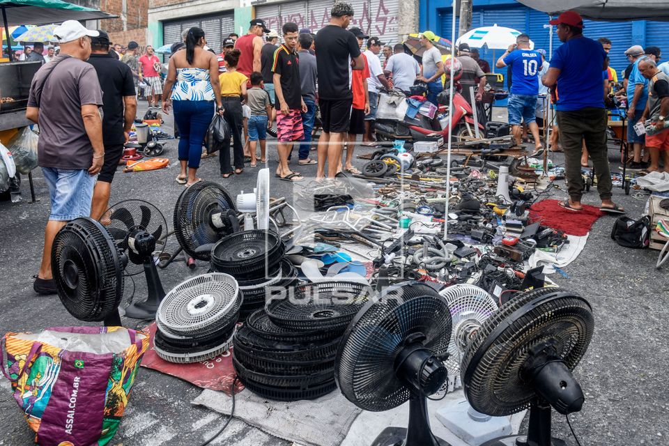 Palavras-chave: carriola comerciante comércio consumidor consumo feira pessoas população vendedor escambo venda região nordeste carrinho de mão informal economia ferramentas consumidores variedade troca ventilador produtos acessórios