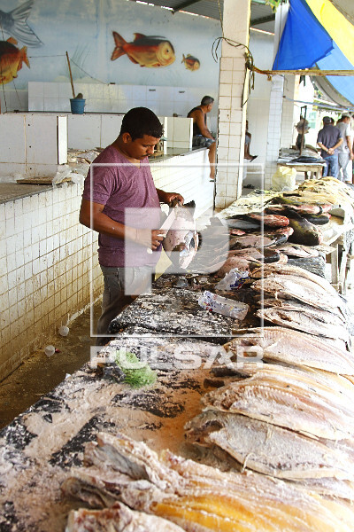 Palavras-chave: alimento banca comércio consumo faca mercado mesa peixaria peixe fresco peixes pescado trabalho limpando venda trabalhador região nordeste homem economia peixeiro