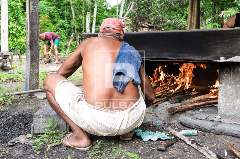 Palavras-chave: região norte comunidade quilombola quilombo comunidade ribeirinha amazônia amazônica casa de farinha zona rural área rural comunidade rural pessoa trabalho quilombola produção artesanal mandioca aipim macaxeira homem trabalhador ribeirinho lenha forno chamas fogo calor forno a lenha ateando fogo acendendo
