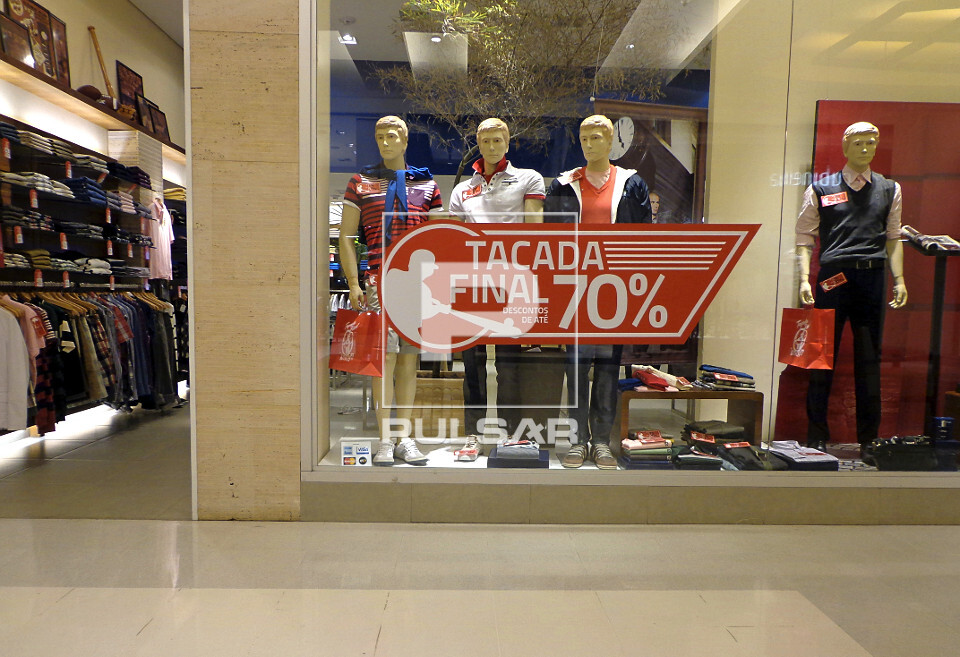 Palavras-chave: comércio loja manequim moda porcentagem promoção shopping shopping center vidro vitrine venda região sudeste roupas liquidação economia manequins roupa masculina desconto moda masculina granja viana