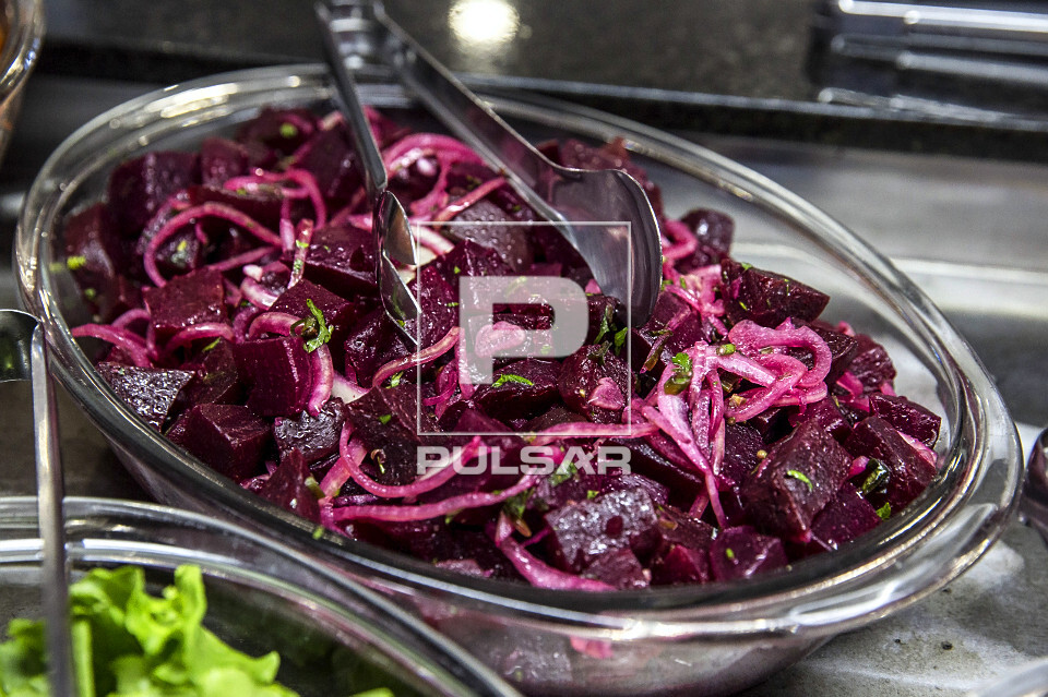 Palavras-chave: alimentação alimento comércio comida refeição restaurante serviços utensílios vidro salada cebola região sul quilo economia self service beterraba almoço buffet saudável pegador recipiente cozida