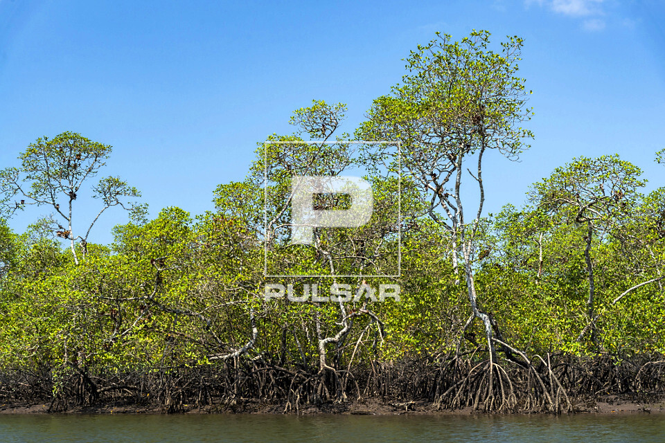 Detalhe de broto de mangue-vermelho próximo ao rio Itaguaré na praia homônima - PERB Parque Estadual da Res