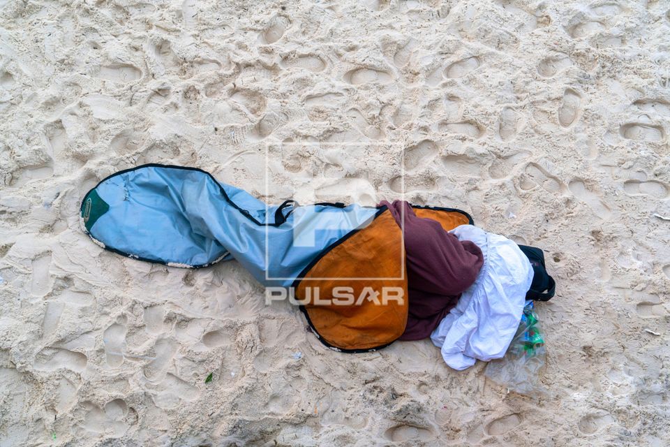 Palavras-chave: região sudeste praia areia pessoa dormindo sem teto pobreza sono manhã