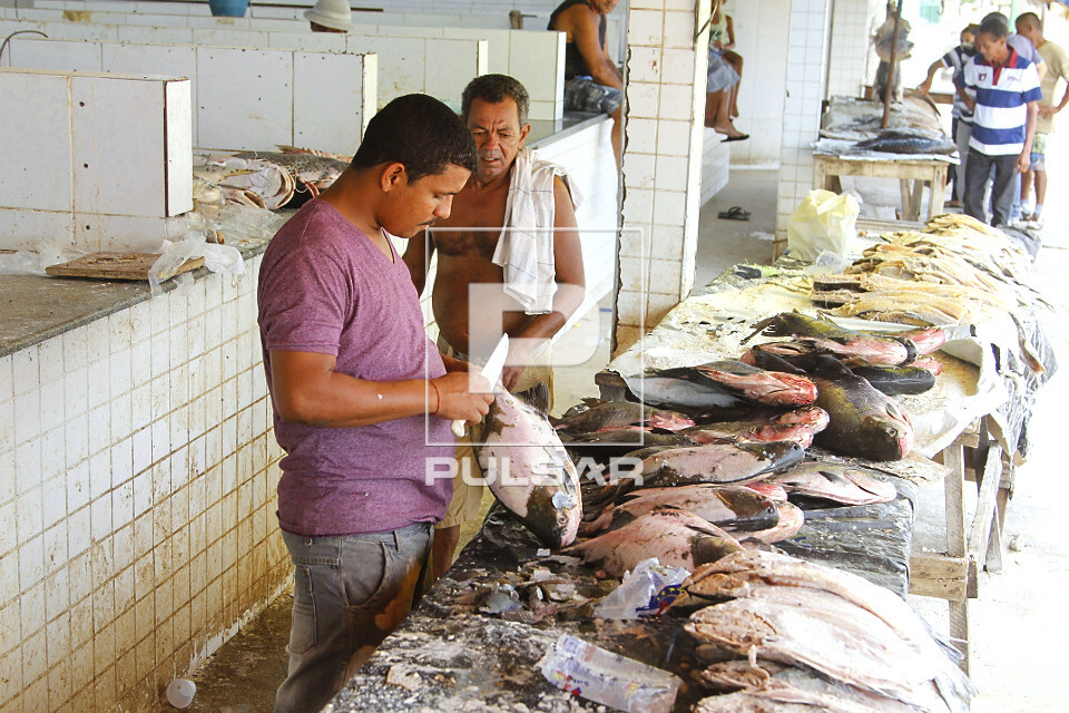 Palavras-chave: alimento banca comércio consumo faca mercado mesa peixaria peixe fresco peixes pescado trabalho limpando venda trabalhador região nordeste homem economia peixeiro homens