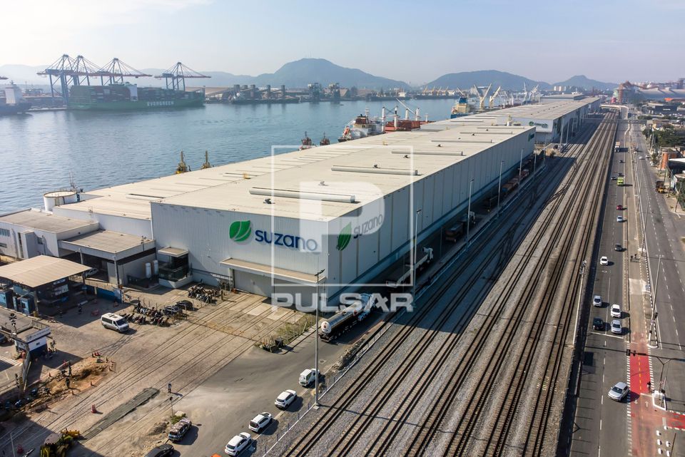Palavras-chave: aérea armazenagem atracadouro avenida Baixada Santista cidade litorânea comércio exterior exportação ferrovia ferroviário galpão importação litoral navio terminal trilhos vista aérea zona urbana transporte região sudeste navios Porto de Santos aéreo economia